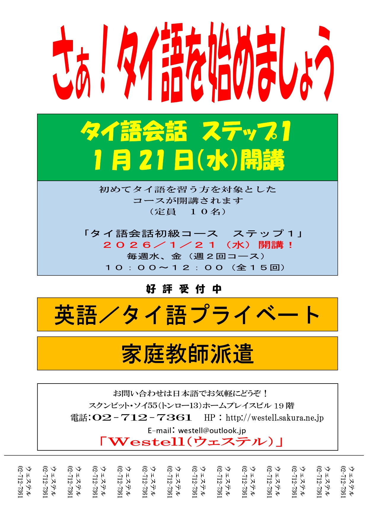 ウェステル ランゲージ スクールでは、タイ語・英語・日本語をグループまたはプライベートでレッスン。